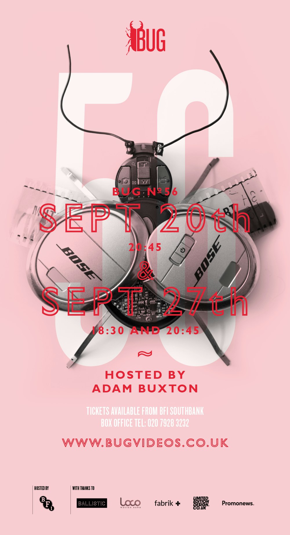 BUG returns to BFI Southbank for 3 shows in September with a brand new selection of music video highlights by artists and directors from around the globe and a spattering of online treats, all brought to you live from Adam's trusty laptop.